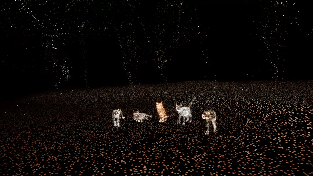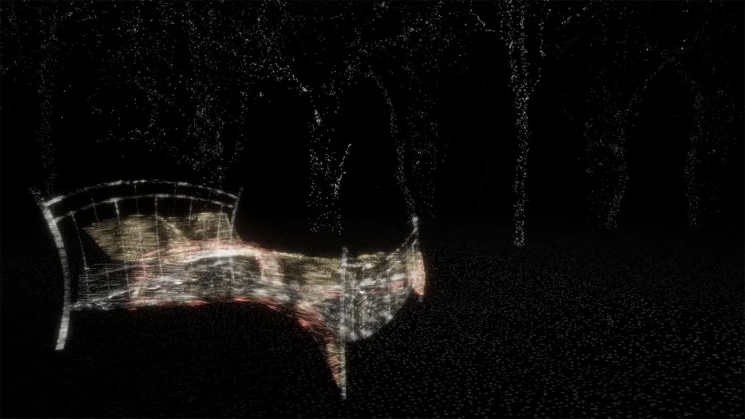 《奇点》是一个结合了三维扫描、头戴式显示和沉浸式声音设计等技术的沉浸式虚拟现实体验。该作品的灵感来源于艺术家身处于加速数字化世界的个人体验。艺术家创造性地发现赛车游戏与人类技术发展进程中出现的摩尔定律、加速回报定律之间的联系,在赛车游戏中,玩家通常可以通过收集道具来实现加速,这与上述定律中每一个新技术诞生,变化率就以指数级攀升的现象不谋而合。该作品运用赛车游戏的运作原理作为整个体验结构的设计基础,在体验的过程中,观众将看到许多我们曾经使用过的以及正在使用的技术隐喻,包括移动电话、蓝牙、信息高速公路、聊天机器人等,通过观察和收集这些“隐喻”,体验虚拟现实中不断加速的世界,最终实现“奇点”。